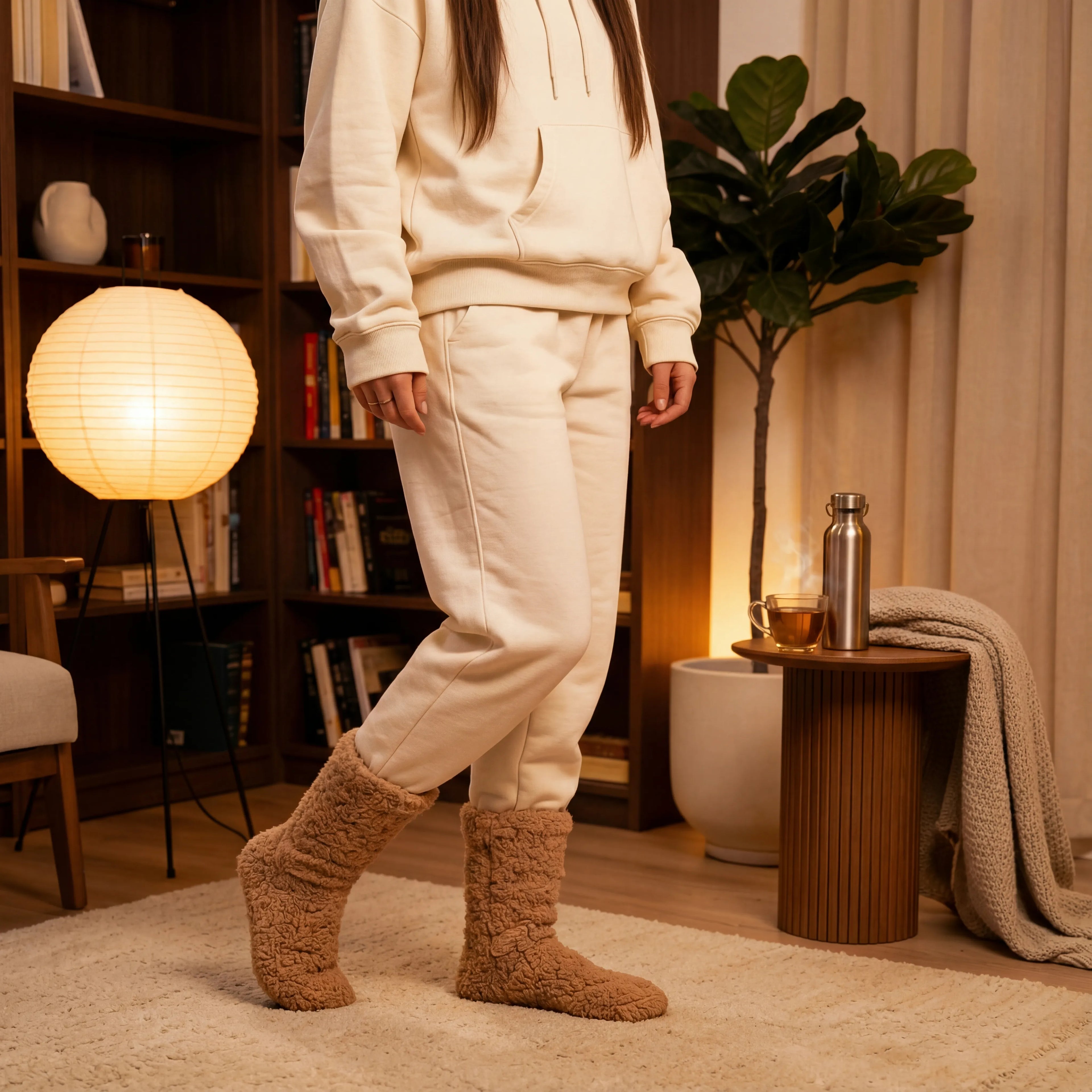 A cozy thickness that keeps your feet warm indoors without feeling heavy or restrictive — perfect for winter comfort at home.